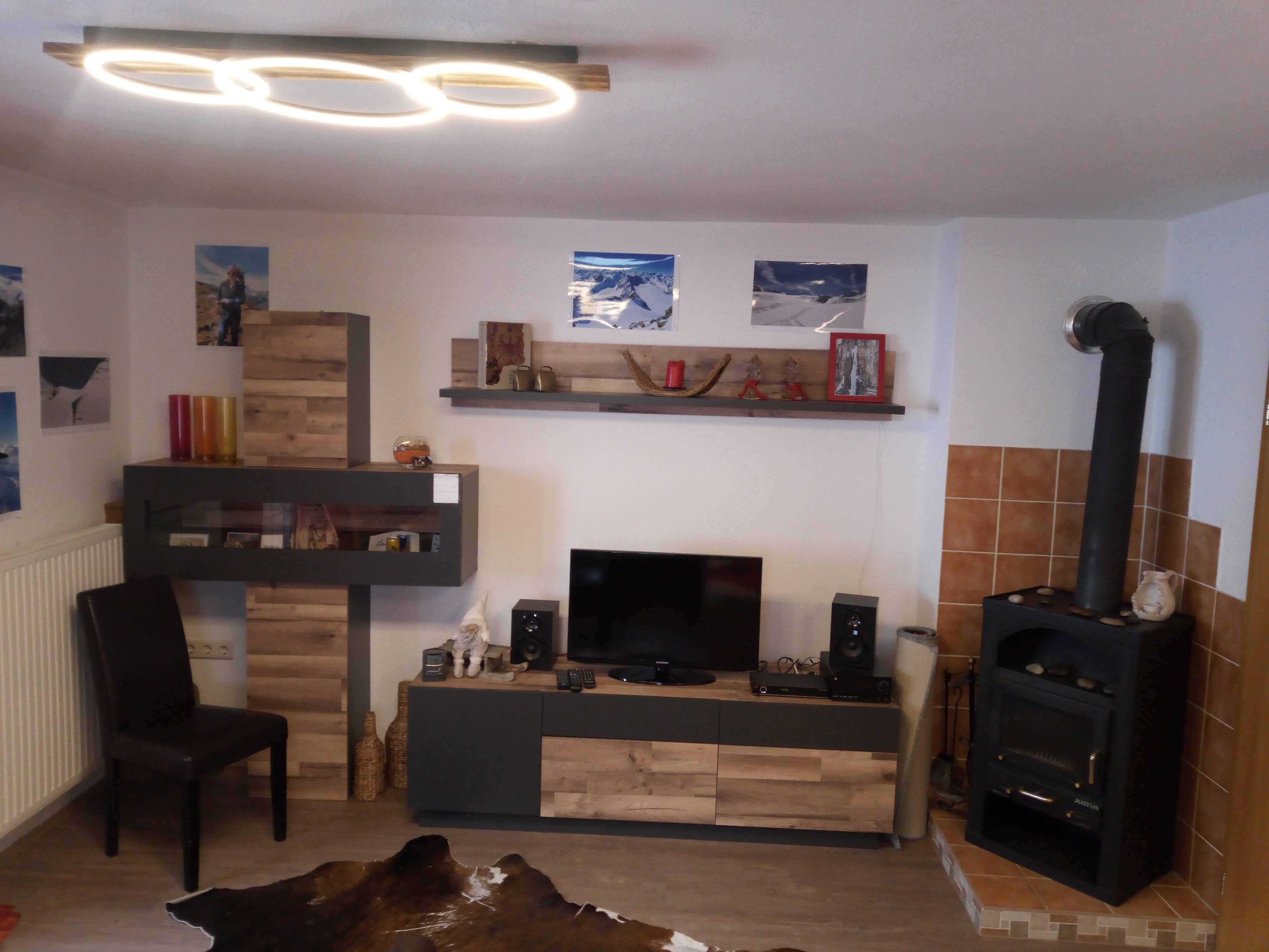 Der gemütliche Wohn-Essraum hat einen Schwedenofen und neuen Flat-TV.